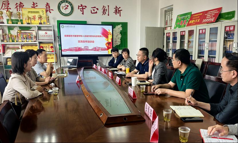 5月13日下午,健康服务与管理学院与运城市恩光科技有限公司在知行书院408会议室召开了校企合作洽谈会。科技处副处长赵勇、健康服务与管理学院骨干教师参加会议。会议由健康服务与管理学院院长闫娟娟主持。