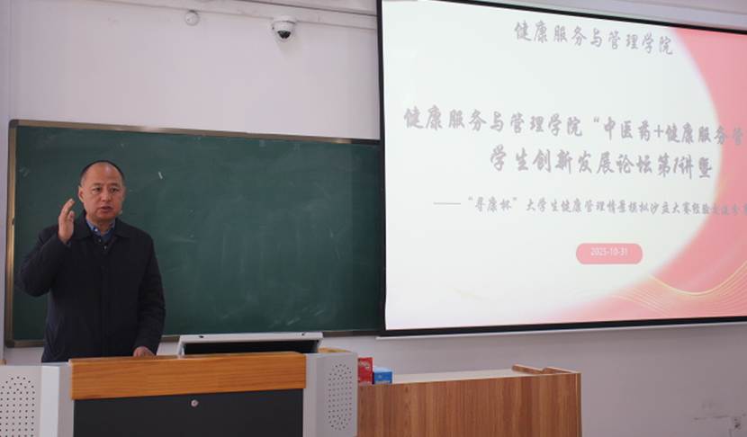 为更好对接健康中国战略、适应新健康理念,提高学生创新能力,增加专业认知度,提升人才培养适配度,健康服务与管理学院开设“中医药+健康服务管理”学生创新发展论坛。10月31日下午,论坛第1讲在仁爱书院307教室顺利召开,主题为学院获第四届“寻康杯”大学生健康管理情景模拟沙盘大赛一等奖经验交流分享。学院党总支书记贾晓斌出席,党总支副书记姜弢主持,大赛指导教师王苗、康益敏及学院2024、2025级健康服务与管理班全体学生、学院各班学习委员、组织委员及有意向申报2026年赛事的学生参会。