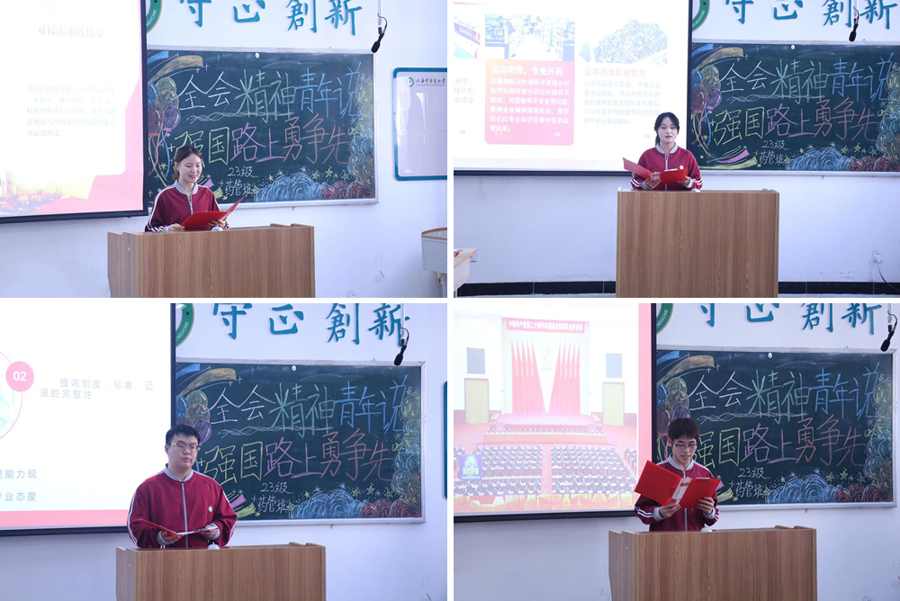 同学们纷纷表示,通过此次主题团日活动,对党的二十届四中全会精神的核心要义、实践要求有了更深刻的领悟,将倍加珍惜时代赋予的机遇,立足药事管理专业深耕细研,练就过硬本领、锤炼品德修为,主动把青春奋斗融入中国式现代化新征程,以昂扬向上的姿态投身国家发展与民族复兴的伟大实践,用专业所长为中医药事业高质量发展注入青春动能、贡献青春力量。
