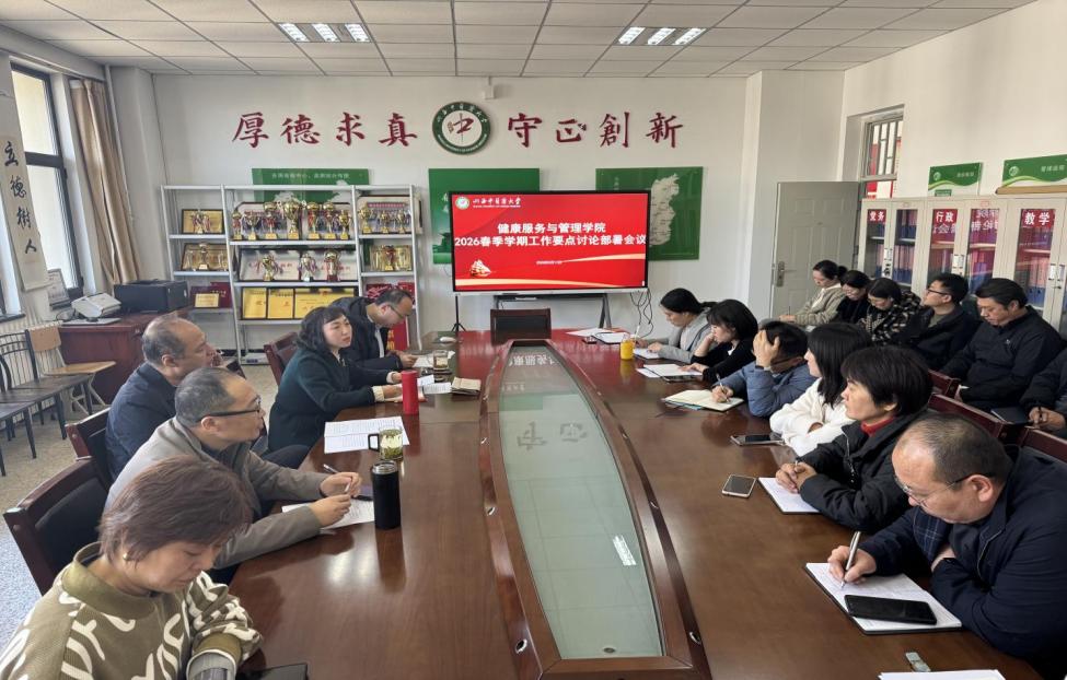 为深入贯彻落实学校2026年新学期工作会议精神,扎实延伸学院在2025年学校第三轮巡察中的整改方案,以实际行动践行正确政绩观,确保学院“十五五”高质量发展开好局、起好步,3 月11日下午,学院召开2026 年春季学期要点工作研讨部署会。学院领导班子、全体教职工参会,会议由院长宋丽娟主持。