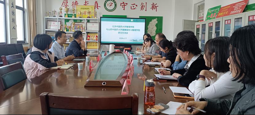 4月17日,我校健康服务与管理学院与北京中医药大学管理学院开展研讨交流活动。北京中医药大学管理学院党委书记赵建磊、副院长王慧、辅导员周磊,我校健康服务与管理学院领导及教师代表参加。学院党总支书记贾晓斌主持会议。