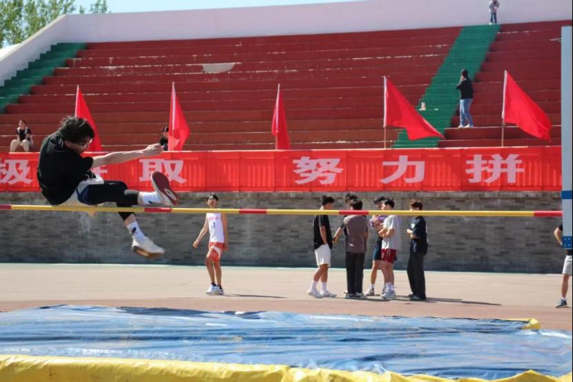 发令枪响,短跑选手如箭飞驰,摆臂矫健;跳高场地,选手助跑腾空,轻盈越杆;接力赛中,队员默契交接,全力冲刺。赛场上,运动员们挥洒汗水,奋勇争先,尽显青春活力与拼搏精神。