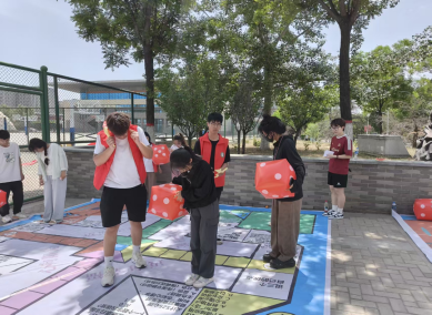5月20日上午,同学们齐聚华佗体育场,对五彩斑斓的棋盘格充满热情。大家纷纷扔出骰子,按点数走到相应格子,抽取题目,思考并作答,所有环节一气呵成!答对时自信的微笑,答错时在NPC提示下的豁然开朗,每一次互动都是知识与心灵的碰撞。同学们在棋盘格间往返,不仅锻炼了身体,更在答题过程中收获了满满欢乐,现场气氛热烈非凡。