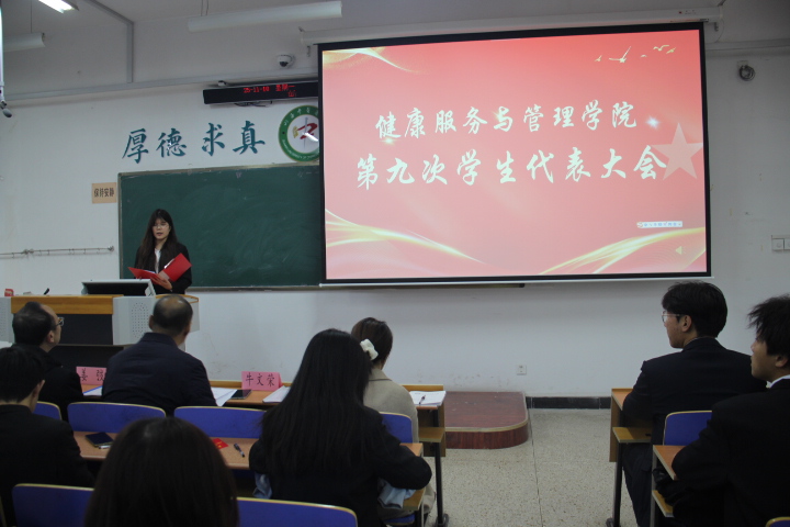 青春逢盛世,奋斗正当时。为凝聚青年力量、共绘发展蓝图,充分发挥学生代表大会的桥梁纽带作用,山西中医药大学健康服务与管理学院第九次学生代表大会于11月10日在知行书院201教室隆重举行。健康服务与管理学院党总支书记贾晓斌、党总支副书记姜弢、辅导员武婷婷、牛文荣、王梦圆,校学生会轮值主席张兰出席大会,同63名学生代表齐聚一堂,共赴这场青春与使命交织的盛会。